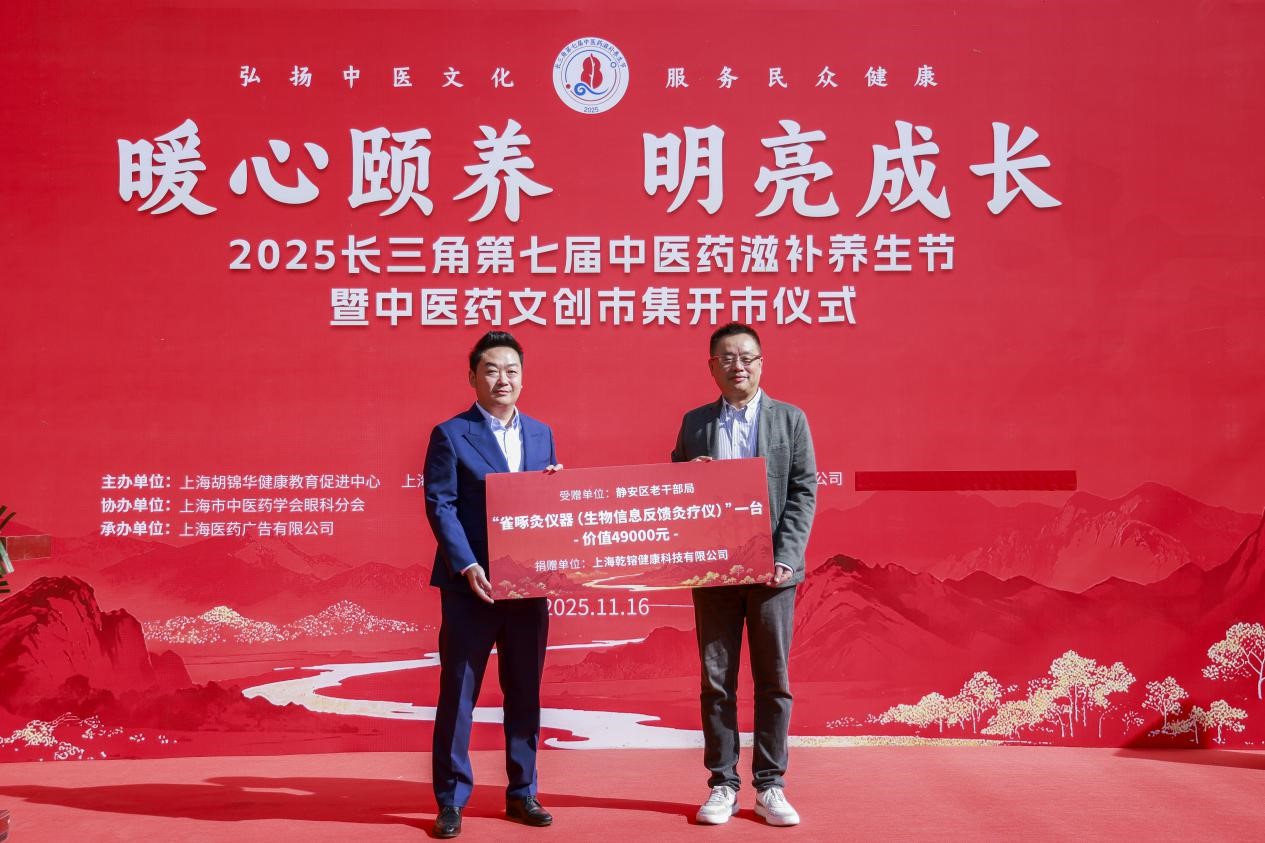 11月16日上午,由上海胡锦华健康教育促进中心、上海广播电视台都市频道、国药控股国大复美药业(上海)有限公司联合主办,上海市中医药学会眼科分会协办的“2025长三角第七届中医药滋补养生节暨中医药文创市集开市仪式”在上海百联杨浦滨江购物中心盛大启幕。