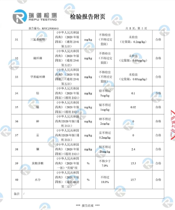 •           重金属、农残均未检出,菌落总数≤5000CFU/g,优于国家标准10倍,食用安全性拉满。