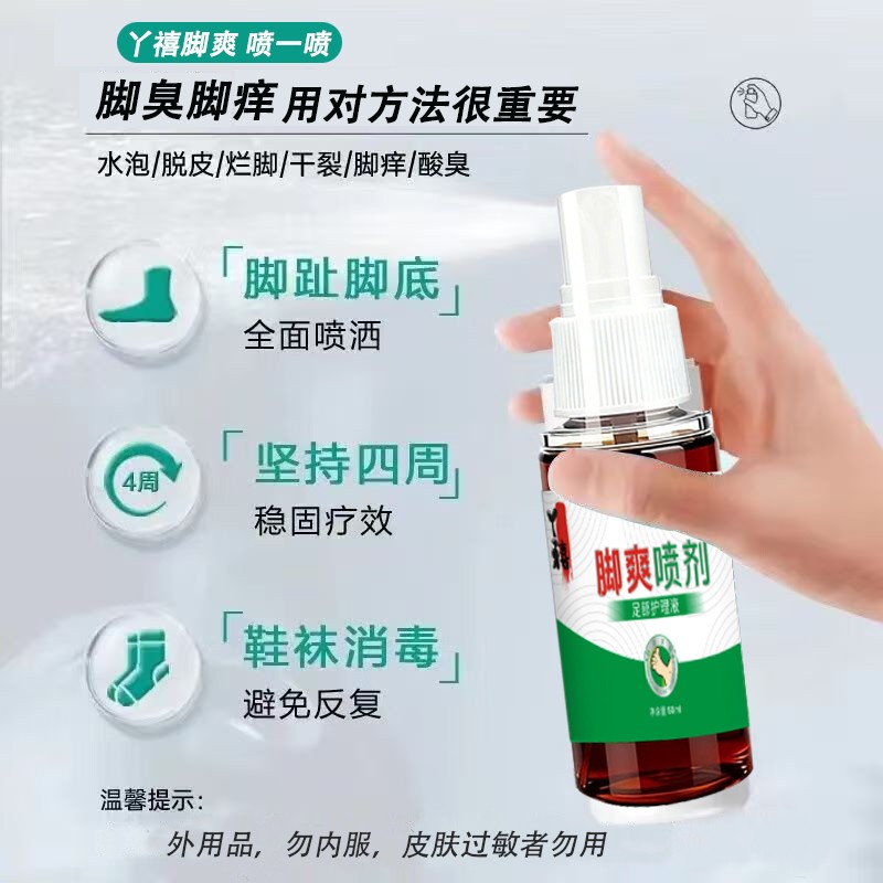 很多人会问,为什么丫禧脚爽套装能比其他产品效果更好?其实核心就在于它的“标本兼治”和“双重防护”。市面上很多脚气产品,只能暂时消杀表面的真菌,无法渗透肌肤底层,也无法对鞋袜进行防护,所以很容易反复复发;而丫禧脚爽套装,一方面通过狼毒、百部、苦参等草本成分,从根源上抑制真菌滋生,彻底消杀潜藏在肌肤底层的真菌,避免脚气复发;另一方面,“一喷一抹”的组合设计,既能快速缓解脚痒、脱皮等表面症状,又能通过喷施鞋袜,形成防护层,阻断真菌传播,防止交叉感染,真正做到全方位、无死角解决脚气问题。