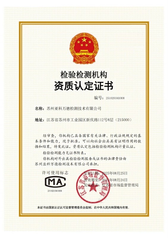 随着市场对产品质量和安全性的关注度不断提高,第三方检测机构的重要性日益凸显。万德检测将凭借 CMA带来的优势,积极拓展业务领域,加强与国内外客户的合作,在检测服务市场中展现出更强大的竞争力,为推动行业标准化、规范化发展贡献自己的力量。