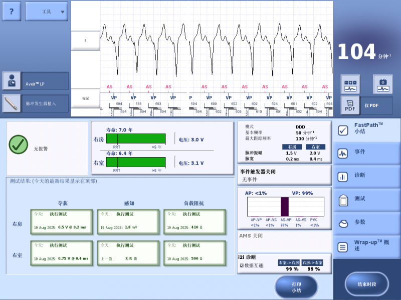 窦性心律>100bpm的情况下As-Vp>99%,i2i通讯99%,保证不同姿势下的房室同步