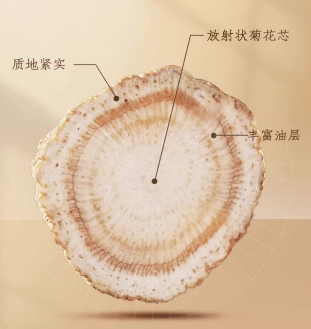 A:一看:好参片表面呈淡黄色或米白色,有清晰的菊花状纹理(放射状裂隙),横切面有棕色环纹(形成层)。二闻:有特有的清香气,无异味、酸味或刺鼻硫磺味。三尝:口含先微苦,后有持久的甘甜回味(“甘凉喉韵”)。四泡:优质参片冲泡后体积膨大,水质清亮,参香持久。
